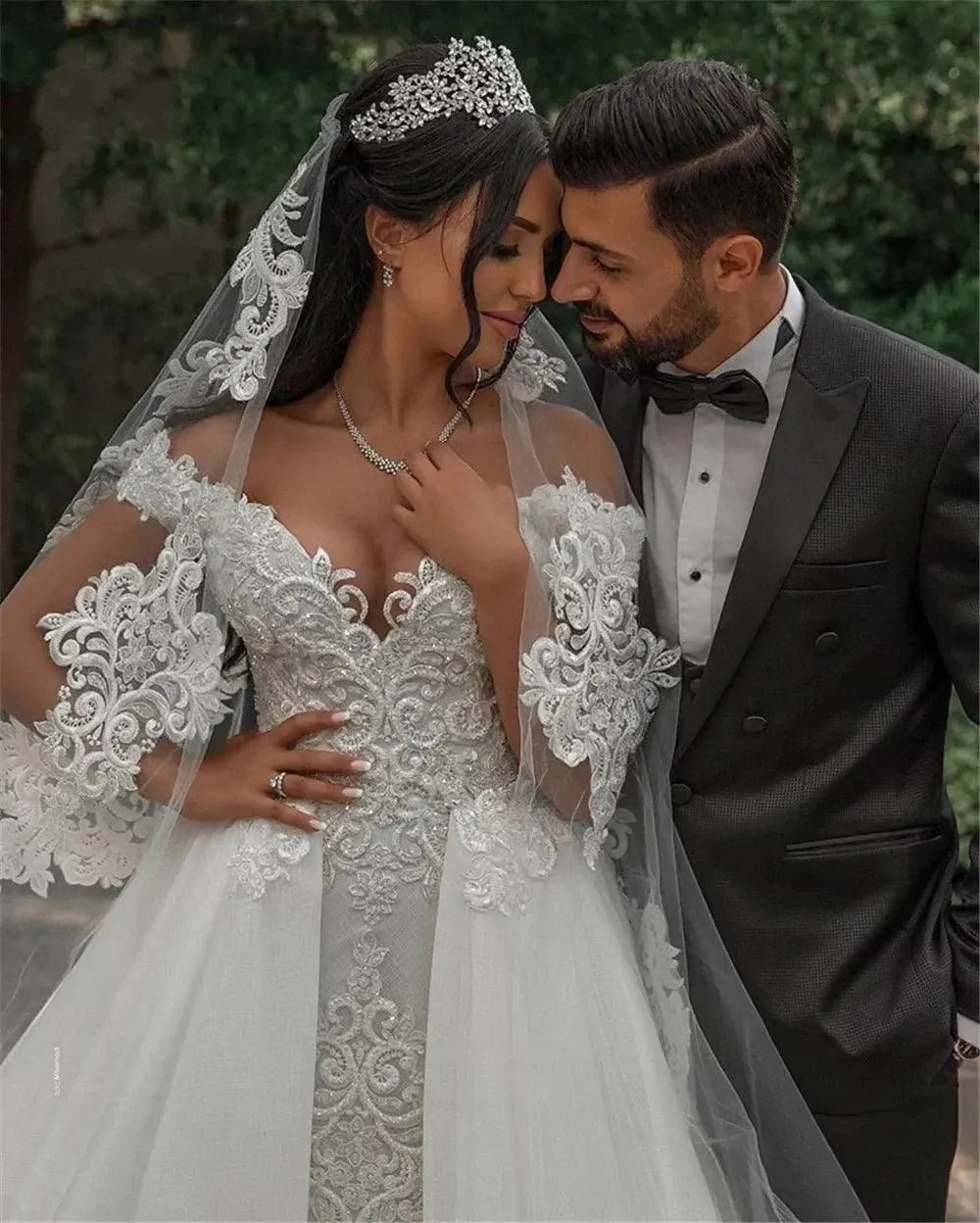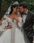 Vestidos de novia Vestido de novia Vestido de baile Cuello en V Tul Encaje Cristales Cuentas Elegante Vestido de novia Hecho a medida