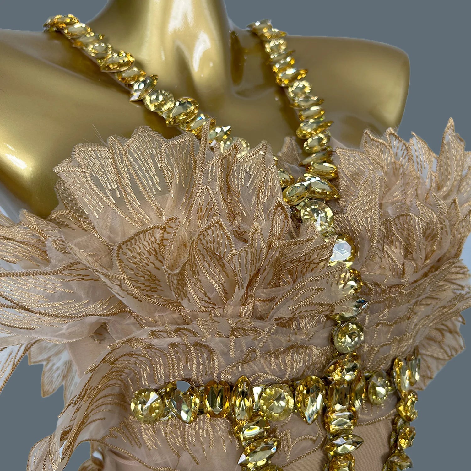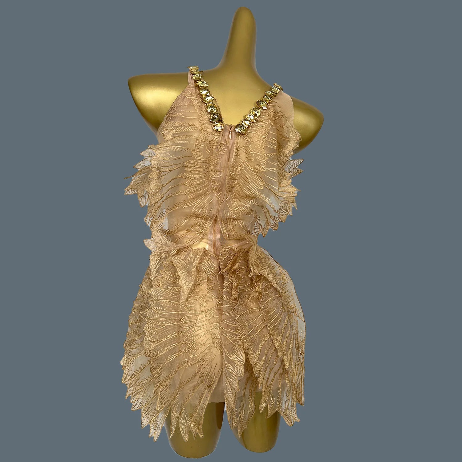 Women Celebrity Sexy Wing Beading Diamonds Gold Short Dress Wedding Party Prom Nightclub Sparkly Gowns Vestido 2024 Jinchan