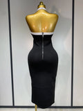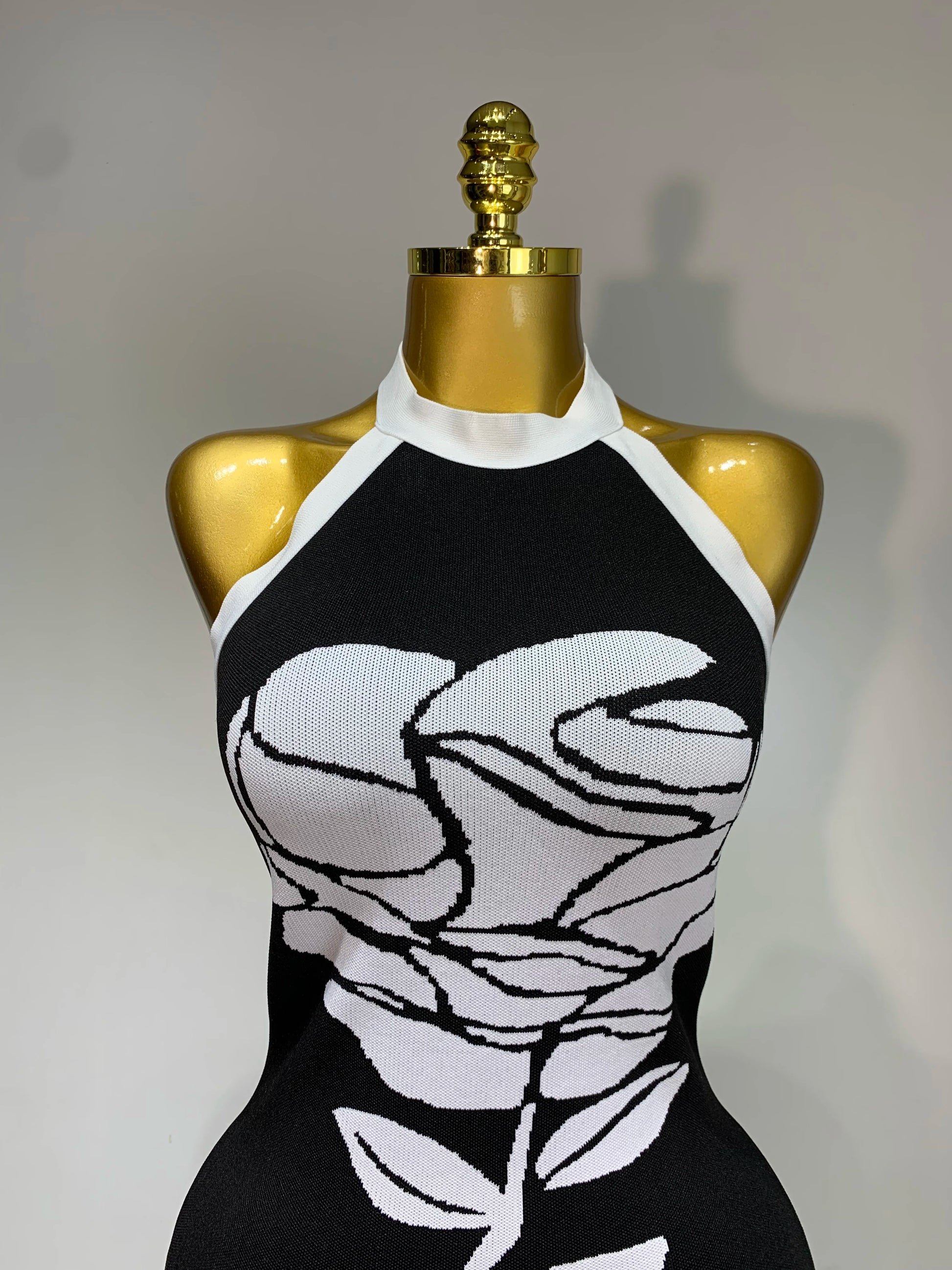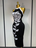 Women Fashion Celebrity Sexy Backless Rose Flower Midi Black Jacquard Bandage Dress 2025 Elegant Evening Club Party Dresses
