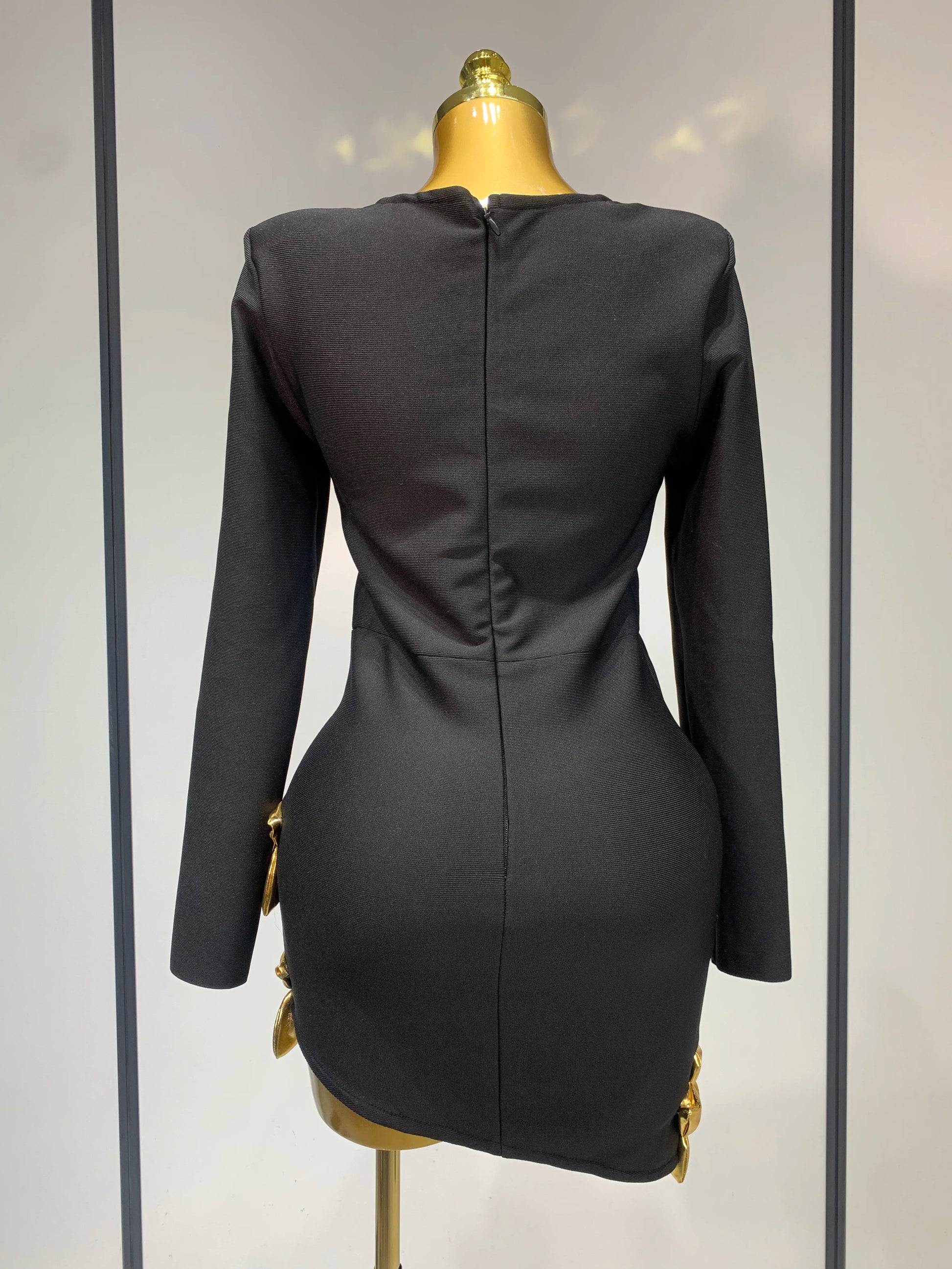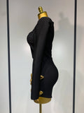Women Long Sleeve Sexy Square Collar Gold Flower Bodycon Mini Bandage Dress Celebirty Elegant Nightclub Luxury Birthday Dresses