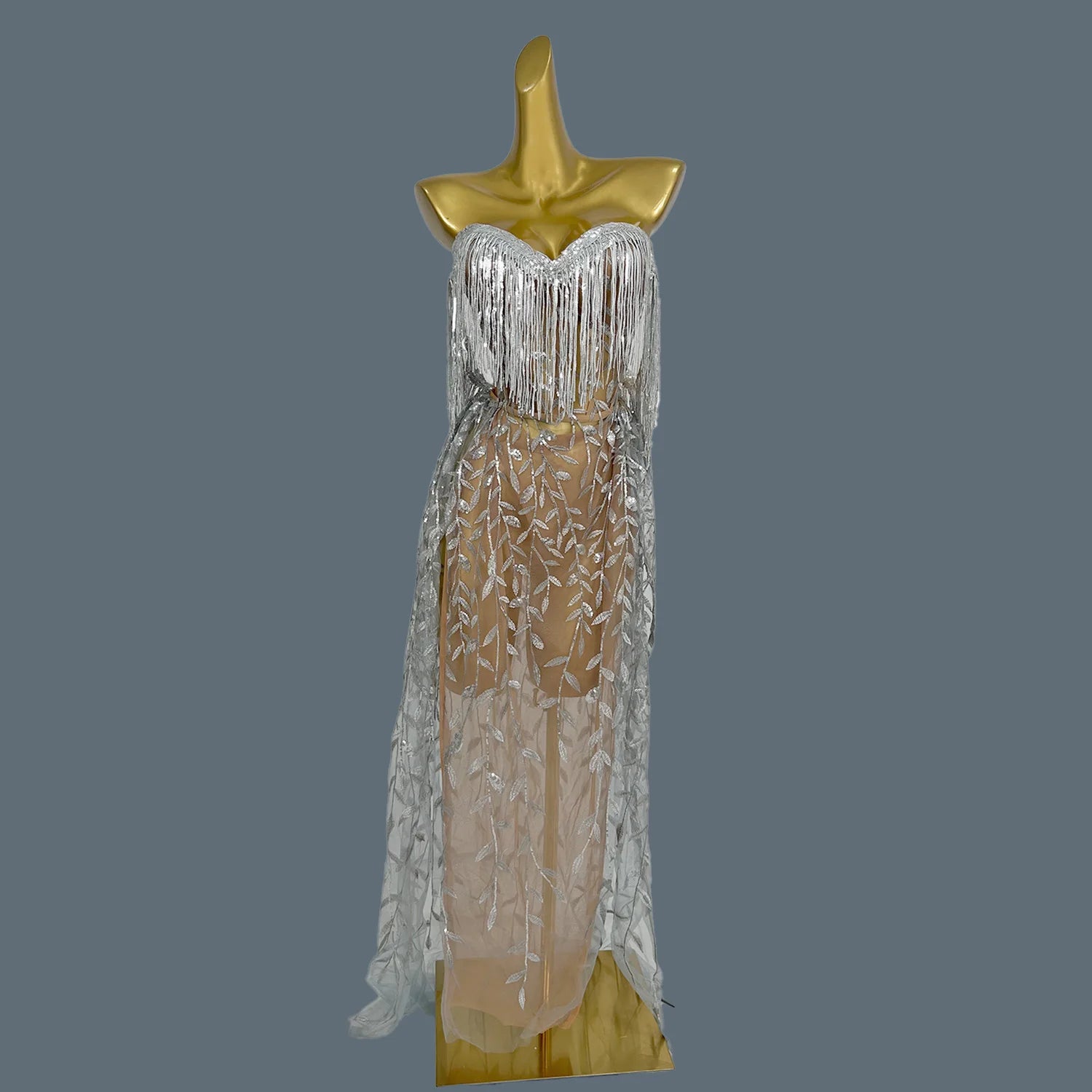 Women Sequins Dress Party Birthday Maxi Dress for Lady Strapless Tassel Gowns Prom Singer Stage Club Show Wear High-end Liushu