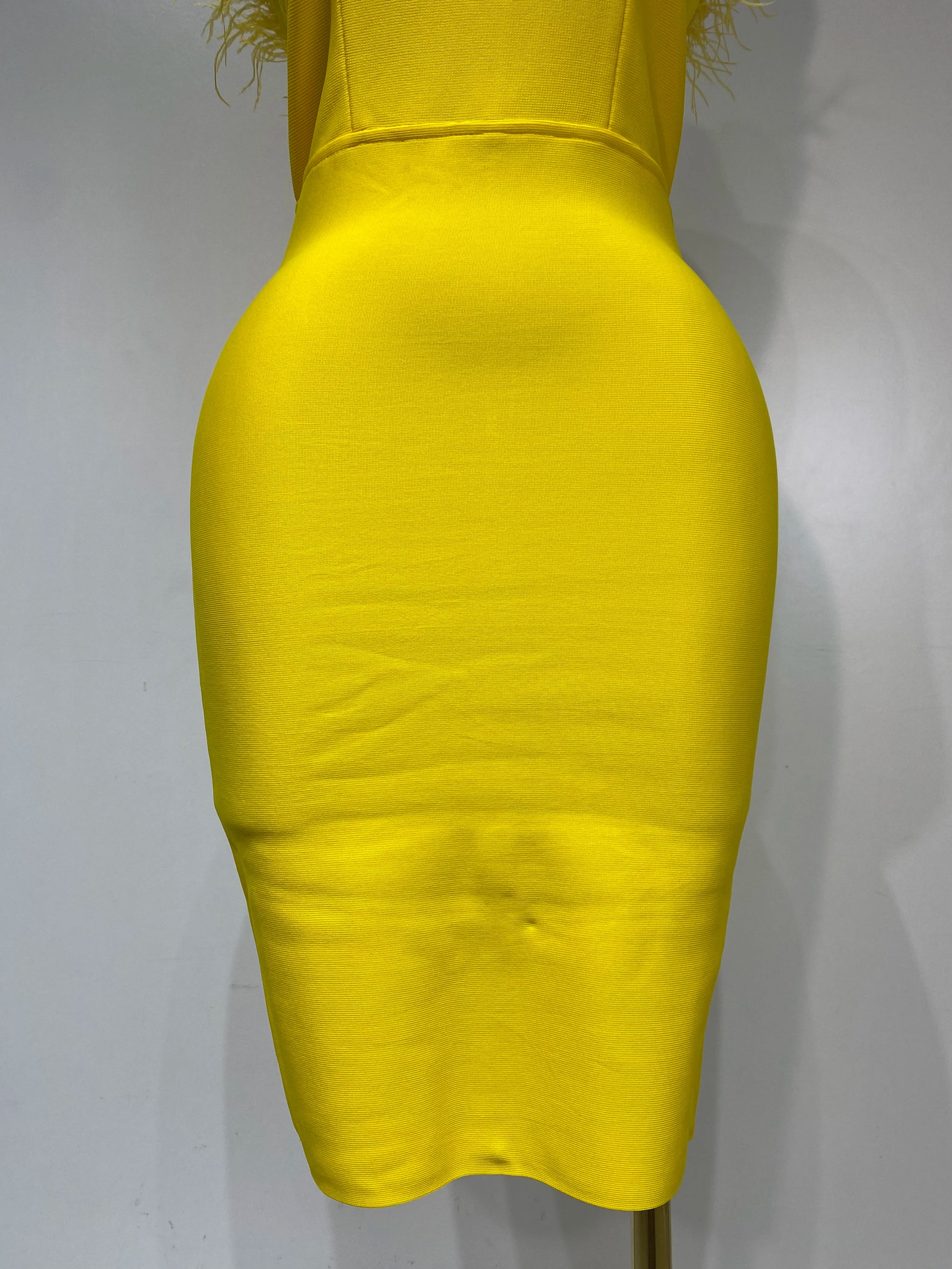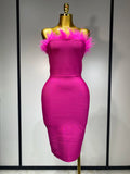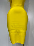 Women Sexy Backless Yellow Bodycon Bandage Dress Strapless Celebirty Elegant Feather Dresses Luxury Birthday Club Party Outfit