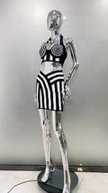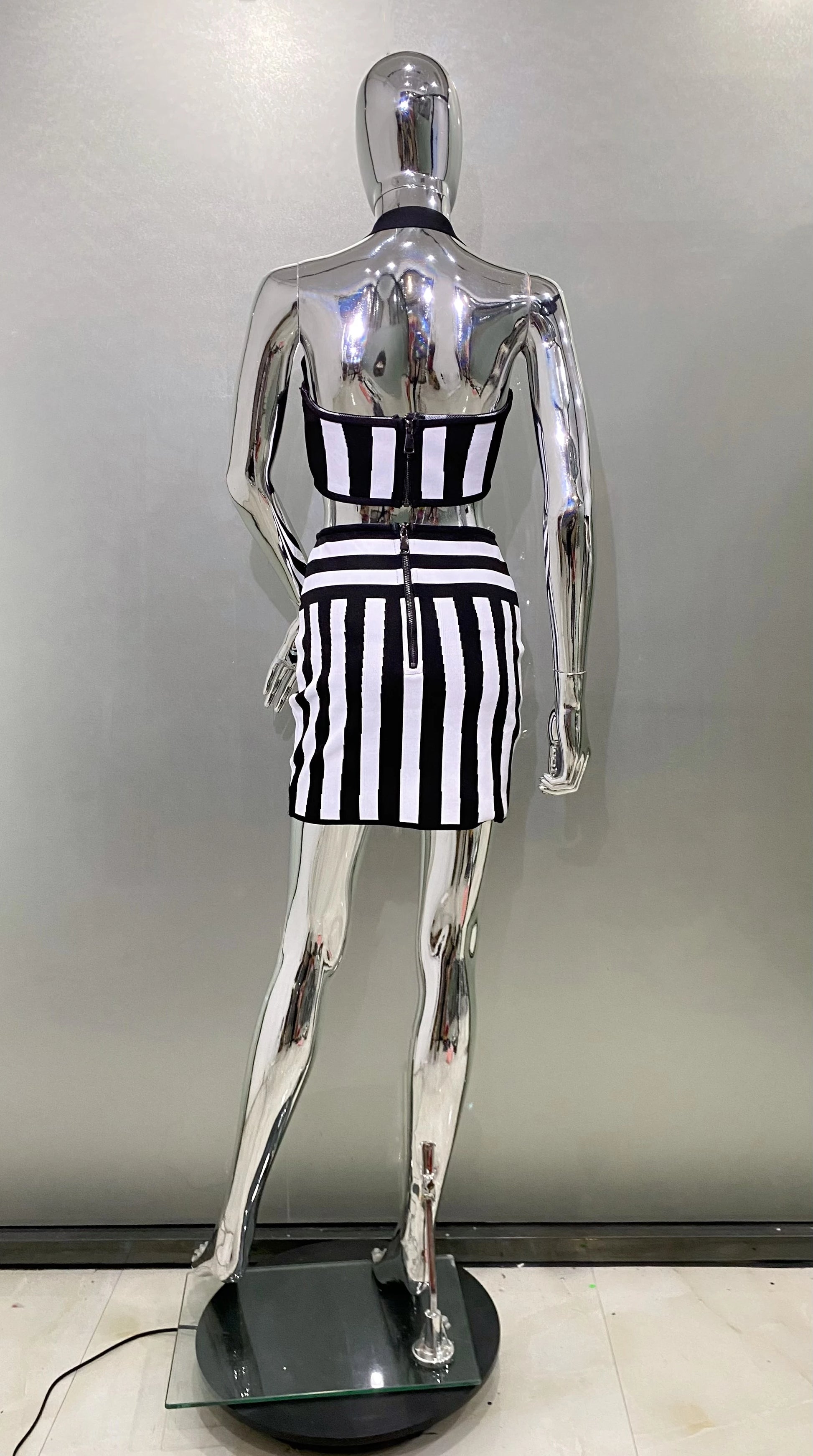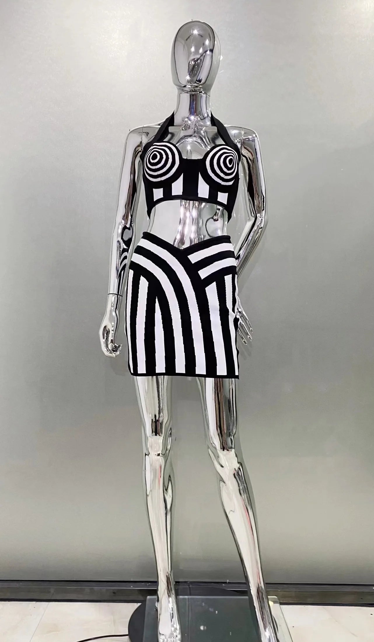 Women Sexy Halter Off the Shoulder 2 Pieces Bodycon Mini Bandage Dress Striped Nightclub Party Celebrate Birthday Dress