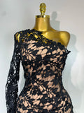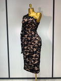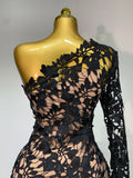 Women Sexy Lace Patchtop Bandage Dress Diagonal Collar Single Shoulder Long Sleeve Bodycon Dress Party Luxury Birthday Dresses