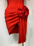 Women Sexy Short Sleeve Square Collar Bodycon Mini Bandage Dress Celebrity Red Carpet Dress Flower Luxury Birthday Outfit