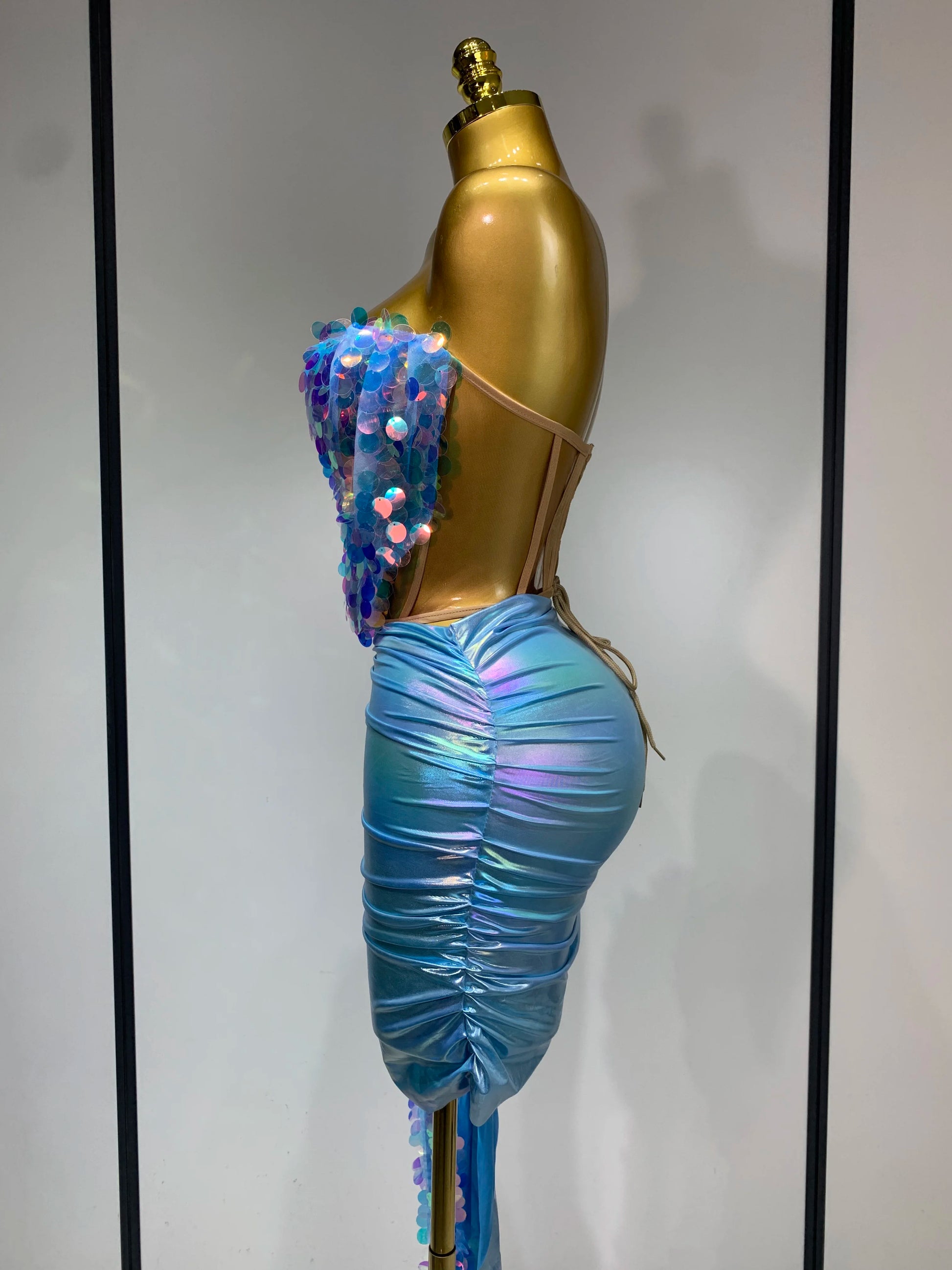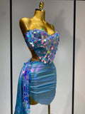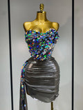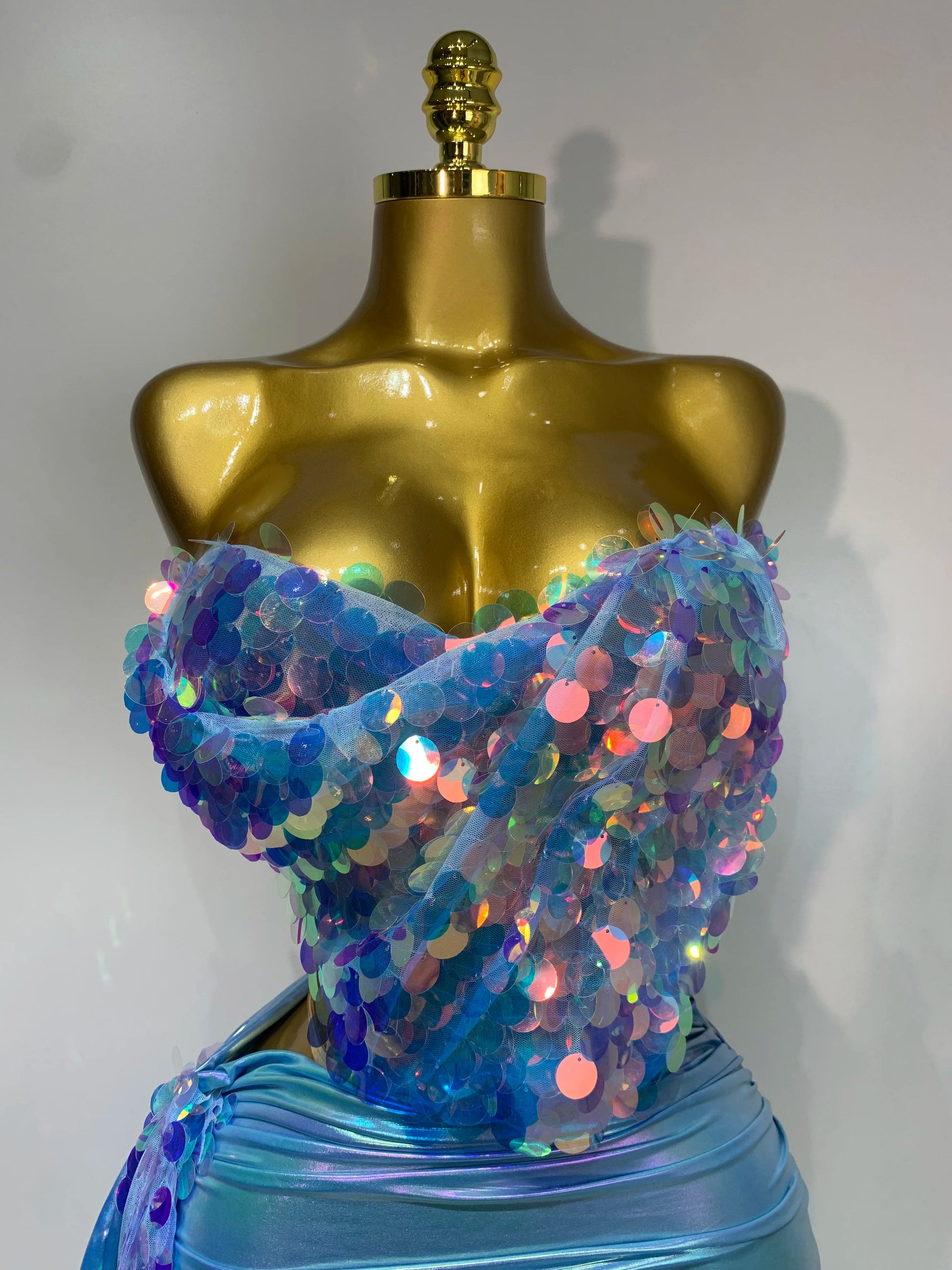 Women Sexy Singer Dancer Performan Costume Nightclub Bar Girl Sparkly Sequins Two Piece Set Evening Party Luxury Birthday Outfit