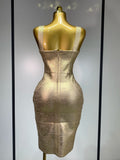 Women Sexy V Neck Bronzing Gold Midi Bodycon Bandage Dress 2025 Celebrity Elegant Evening Club Party Luxury Birthday Dress