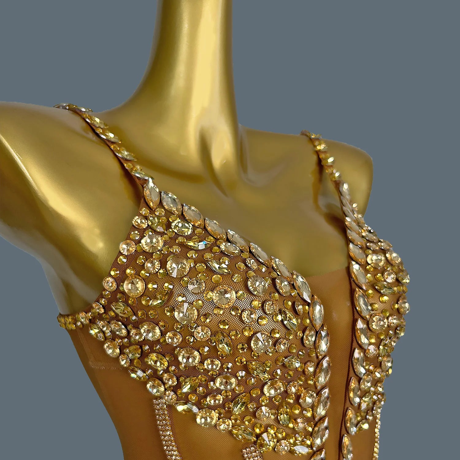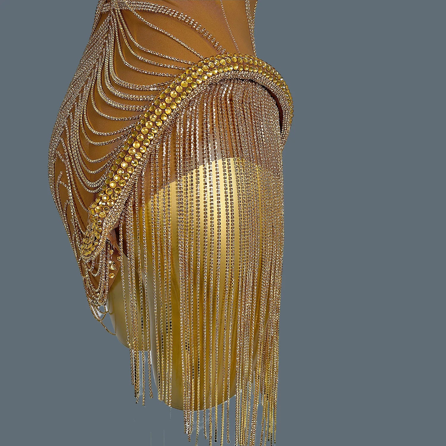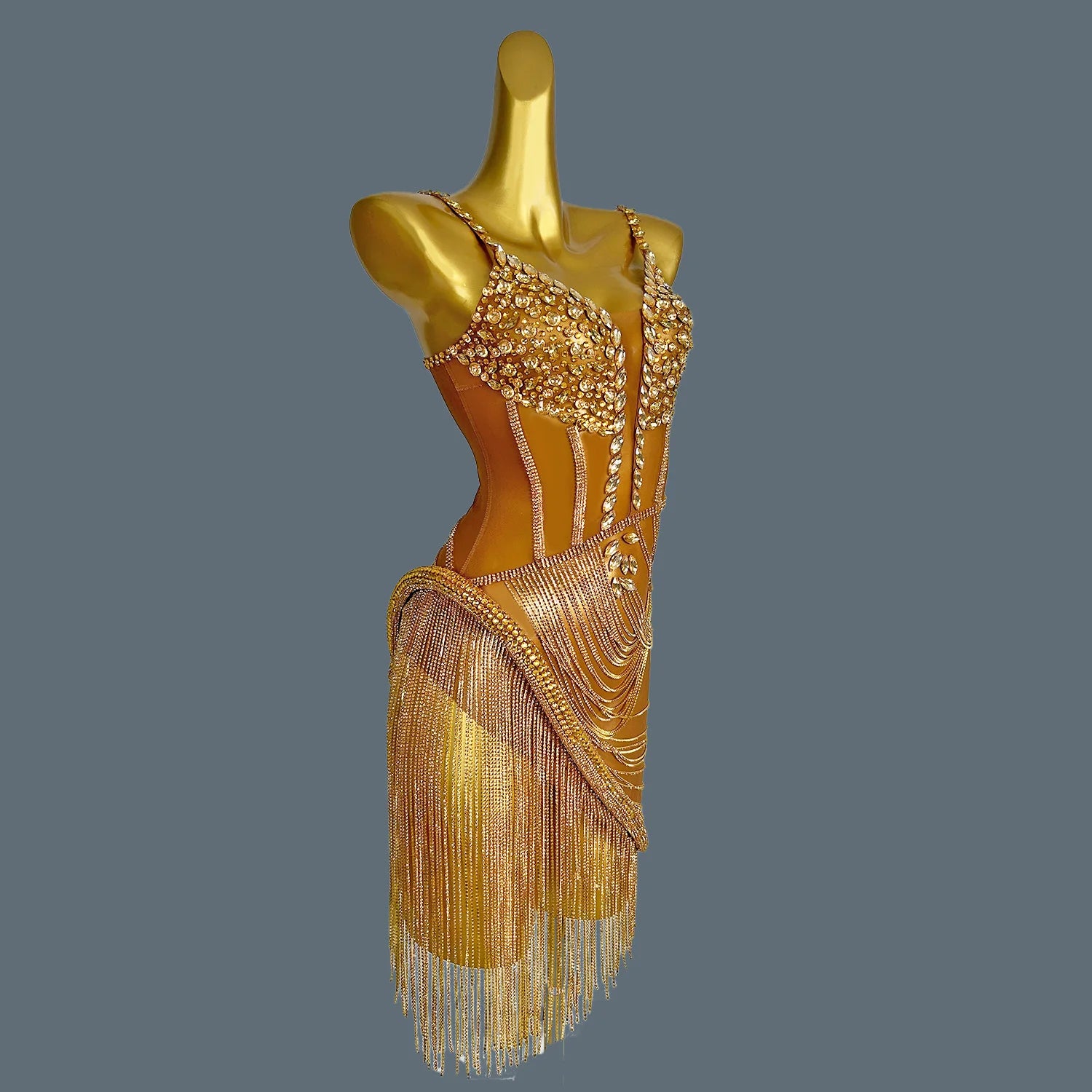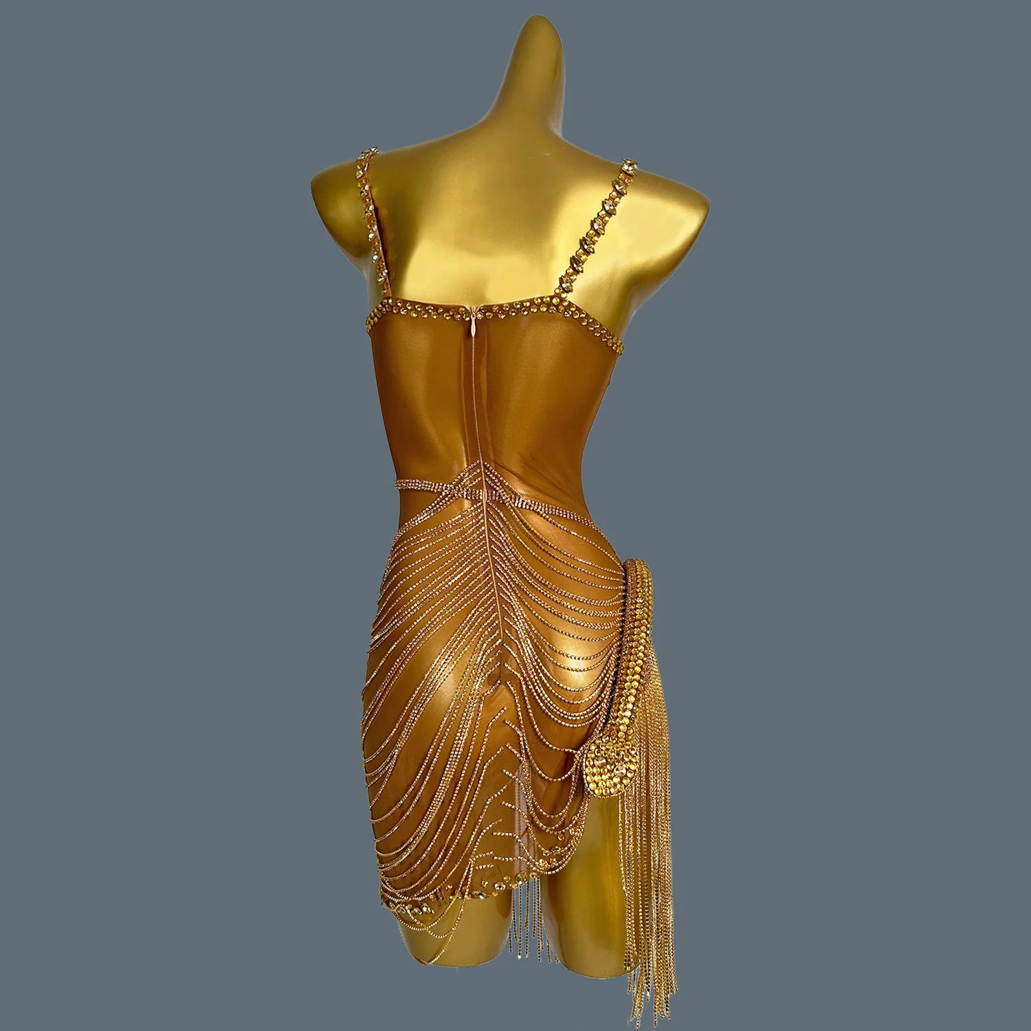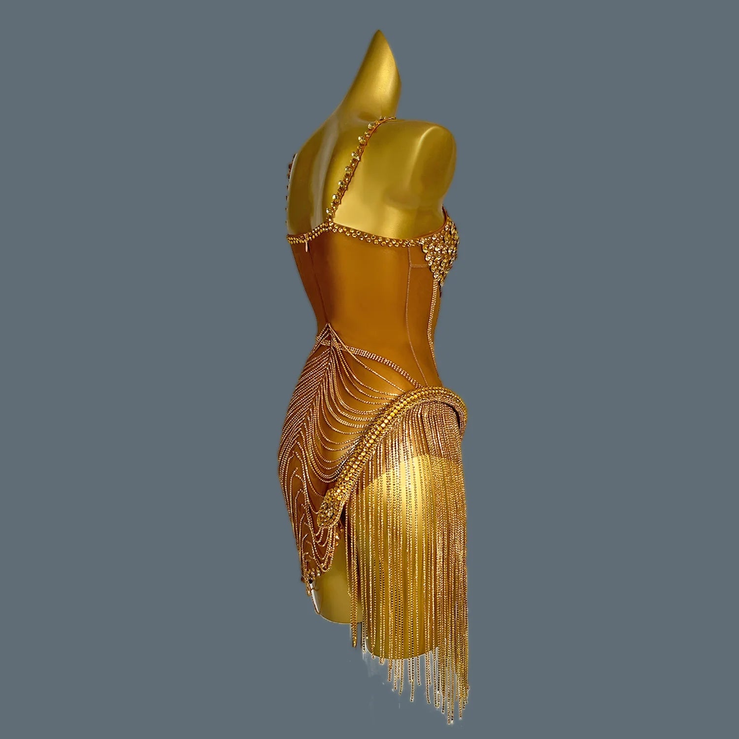 Women Shiny Gold Crystal Chain Diamonds Dress Elastic Sexy Mini Night Club Performance Costume Birthday Party Dress Tassel Liehu