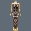 Women's Black Pattern Rhinestone Sparkly Ball Dress Birthday Luxury Dinners Sexy Maxi Dress Celebrate Party Evening Gown Heijiao
