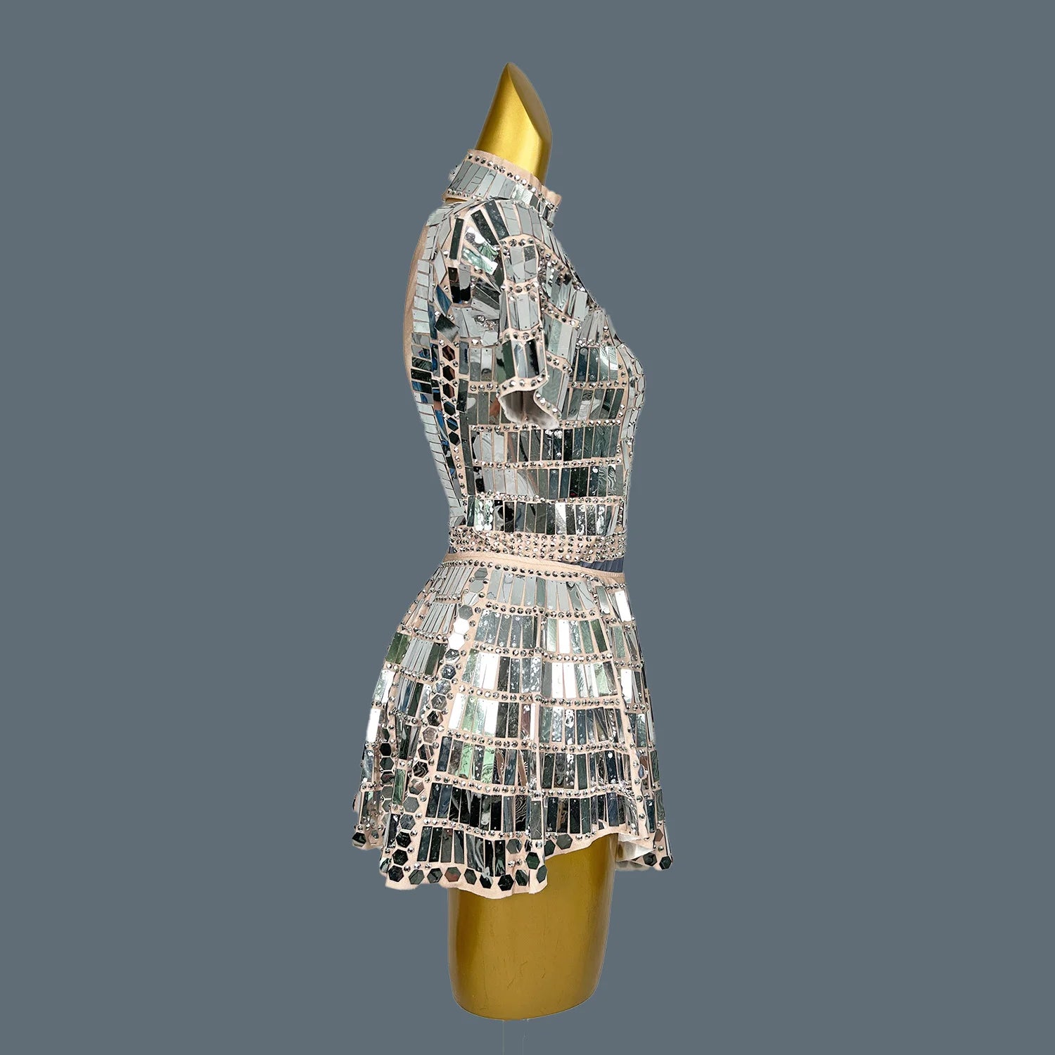 Women's Stage Show Bodysuit Mini Skirt 2Pcs Set Nightclub Dance Costume Birthday Party Shine Sequins Singer Wear Lianghuanghuang