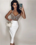 2023 Exquisite Pearl Beading Halter Bodycon Knee Lenght Dress Graceful Woman Hips Package Bandage Dress Evening Party Vestido