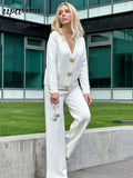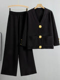 2025 Casual Women's Knitted Pants Set V-neck Long sleeved Single breasted Knitted Sweater Cardigan+Flare Pants Two piece Set