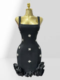 2025 Summer Shining Diamonds Sleeveless Sexy Bodycon Mini Bandage Dress Ruffles Celebrate Evening Party Birthday Outfit Vestido