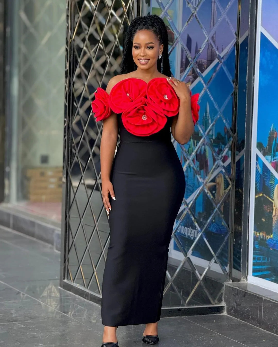 3 Colors Stereoscopic Flowers Sexy Off The Shoulder Ankle Lenght Bandage Dress Woman Birthday Party Vestido Wedding Party Outfit