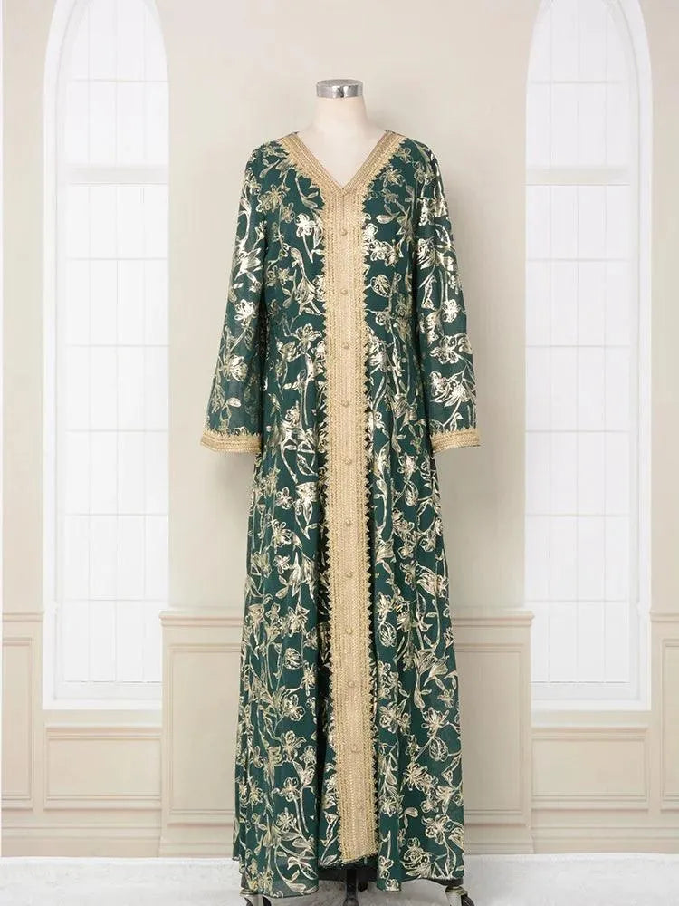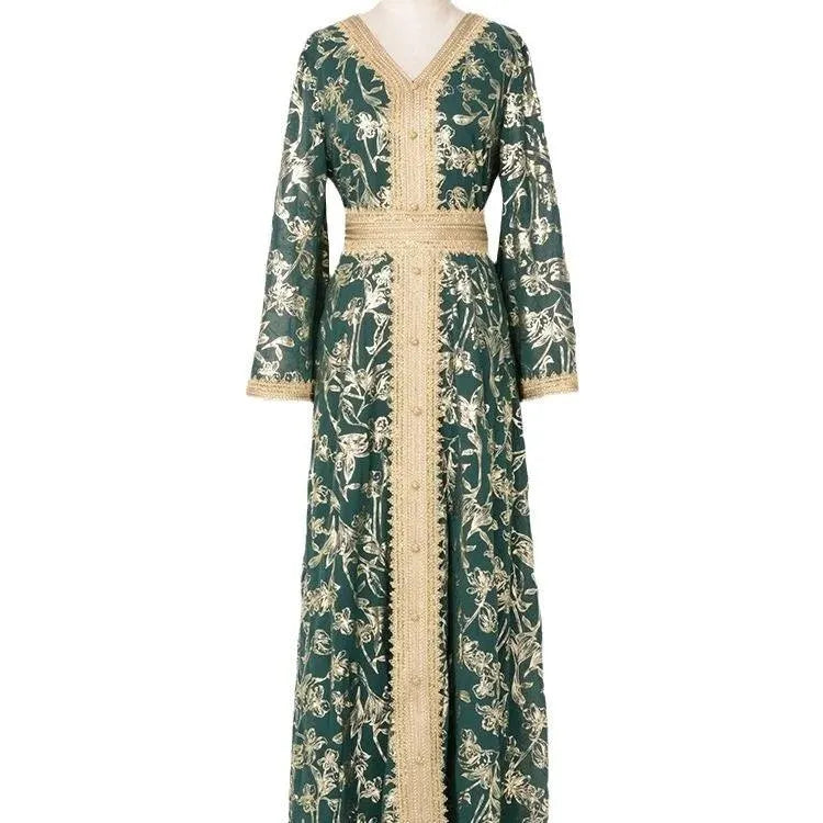Abaya pour femme Dubaï robe de soirée musulmane longue robe pour bal de promo bas saisir fleur or estampé mode robe avec ceinture vêtements