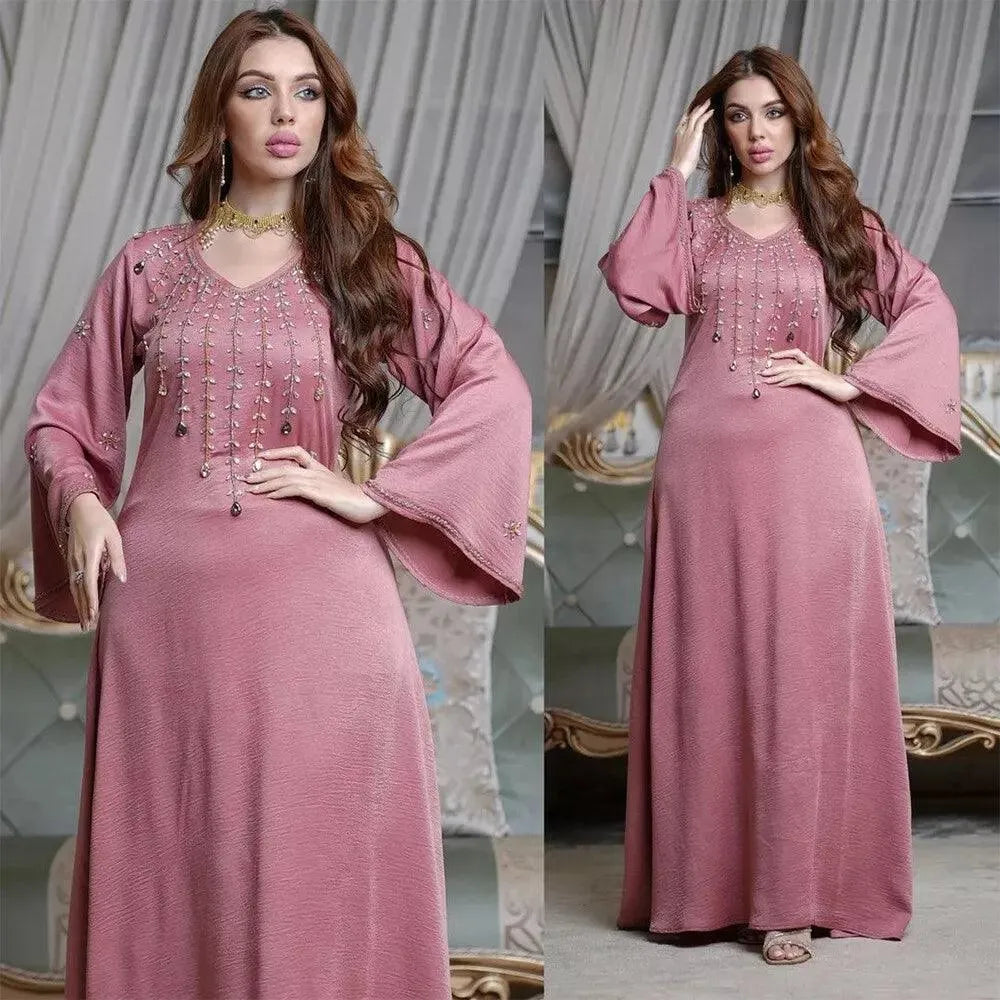 Abayas du Ramadan pour femmes musulmanes, vêtements islamiques arabes turcs, koweïtiens, diamants solides, robe ample marocaine du Golfe
