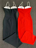 Black Red Color Women Sleeveless Sexy Strap Square Collar Bodycon Long Bandage Dress Fashion Celebrate Nightclub Party Outfit