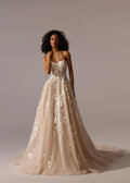 Robe de mariée champagne pour femme, longue coupe trapèze, élégante