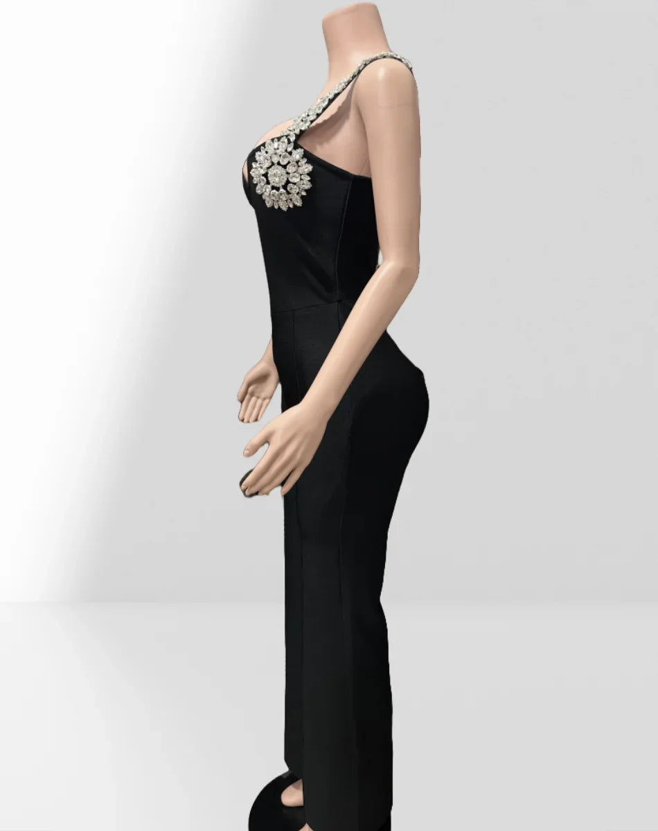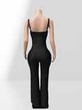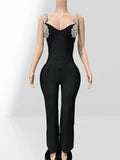 Shining Diamonds Sexy V-Neck Sleeveless Jumpsuit Graceful Woman Evening Party Outfit
