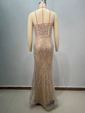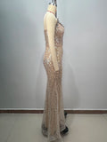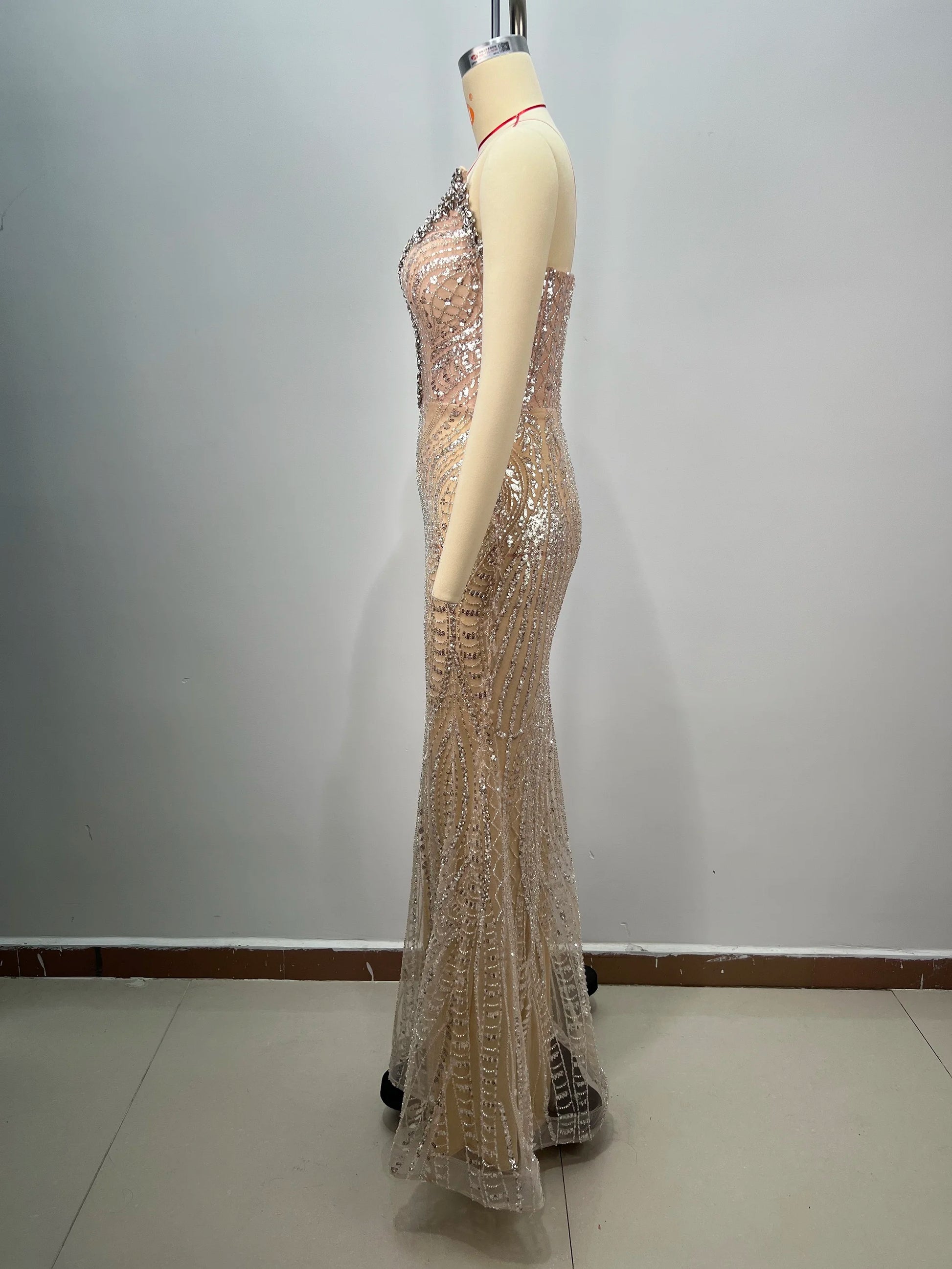 Luxury Diamond Champagne Sequins Sexy Straplerss Ankle Length Dress Woman Birthday Party Dress Celebrity Cocktail Party Vestido