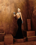 Luxury Diamond Neck Sexy Halter Sleeveless Steath Ankle Lenght Bandage Dress Graceful Woman Party Dress Birthday Party Vestido