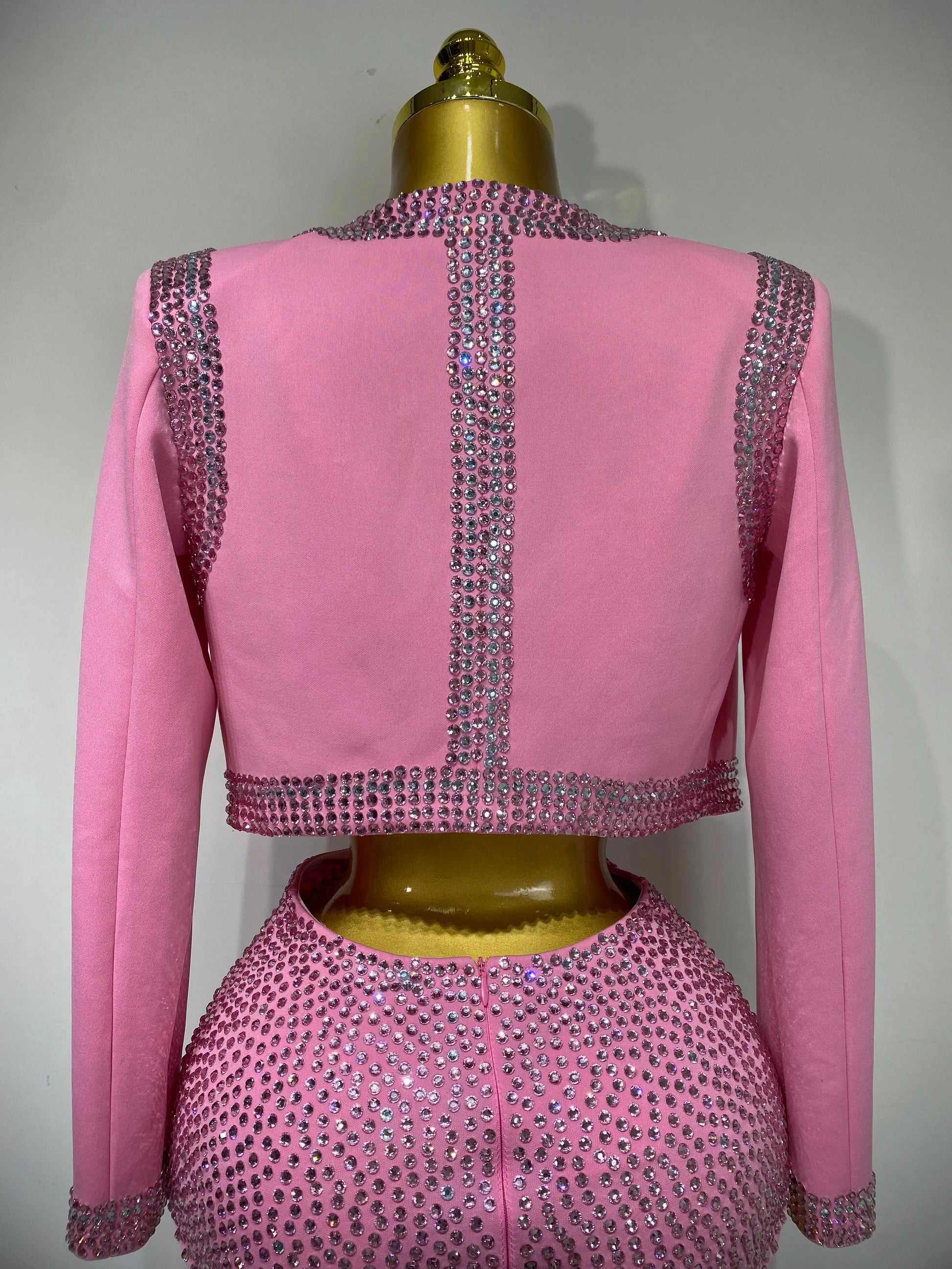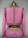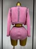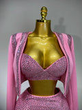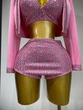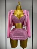 Luxury Rhinestone Jacket Bra Top And Matching Shorts Set 3 Pieces Outfits Women Sexy Sparkle Nightclub Singer Stage Outfit