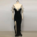 Women Sexy Strapless Big Pearl Beading Bodycon Long Bandage Dress Celebrate Evening Party Red Carpet Fashion Outfit