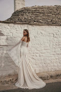 Robe de mariée de plage élégante avec manches longues, décolleté en cœur et dentelle délicate pour un look de mariée gracieux et romantique