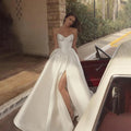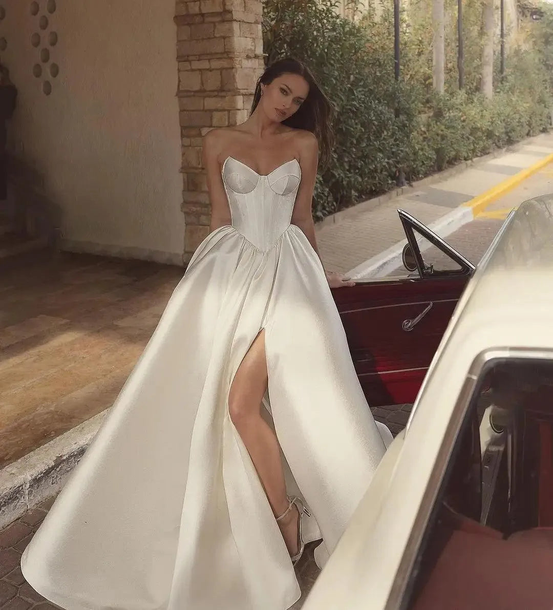 Robe de mariée vintage ivoire trapèze en satin mono, sexy, fendue sur le côté, style bohème, avec lacets dans le dos