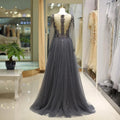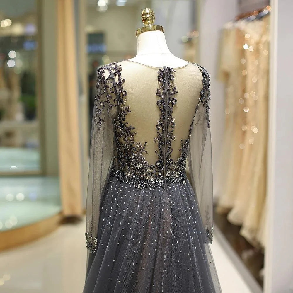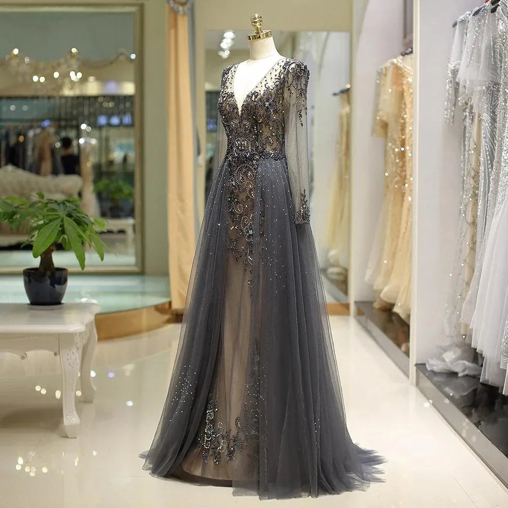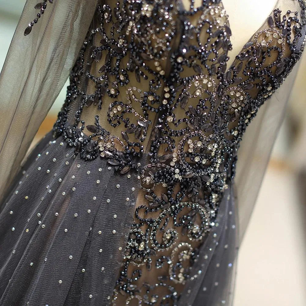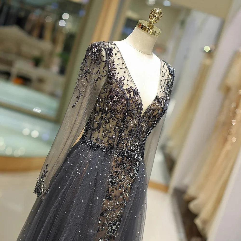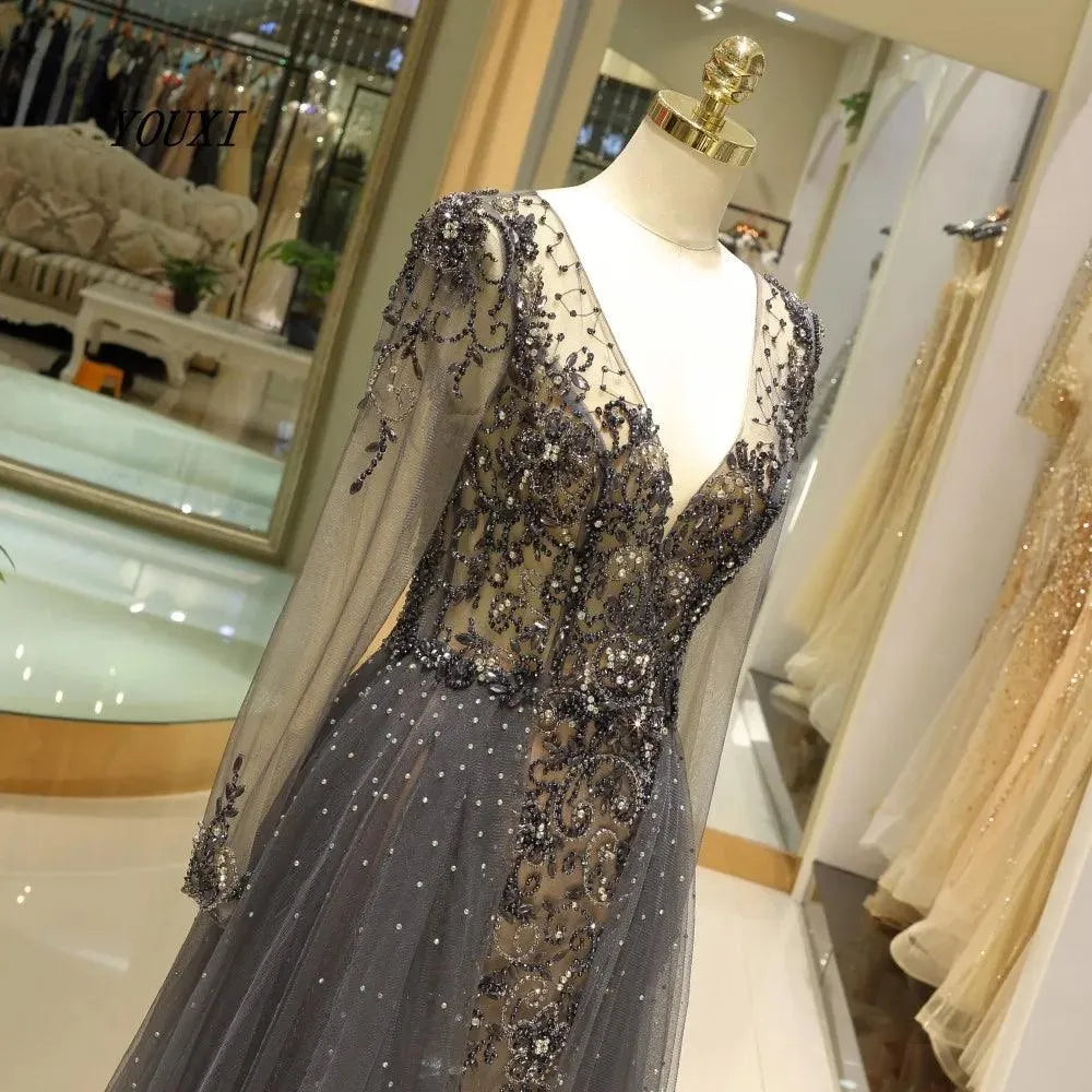 Robe de soirée à manches longues et col en V plongeant, personnalisée, avec strass scintillants et perles en cristal, robe de soirée dos nu