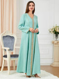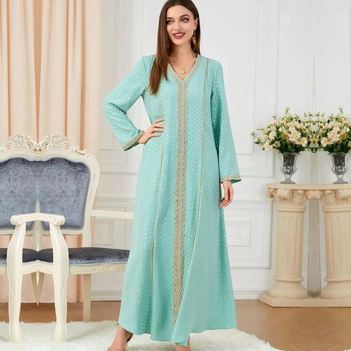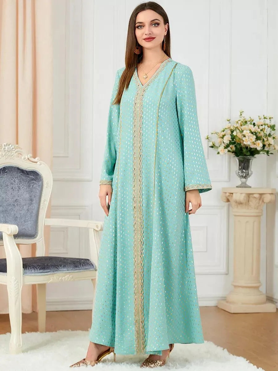 Robes africaines à la mode pour femmes, Abaya, bordure à ruban, manches longues, col en V, élégantes, décontractées, vêtements marocains