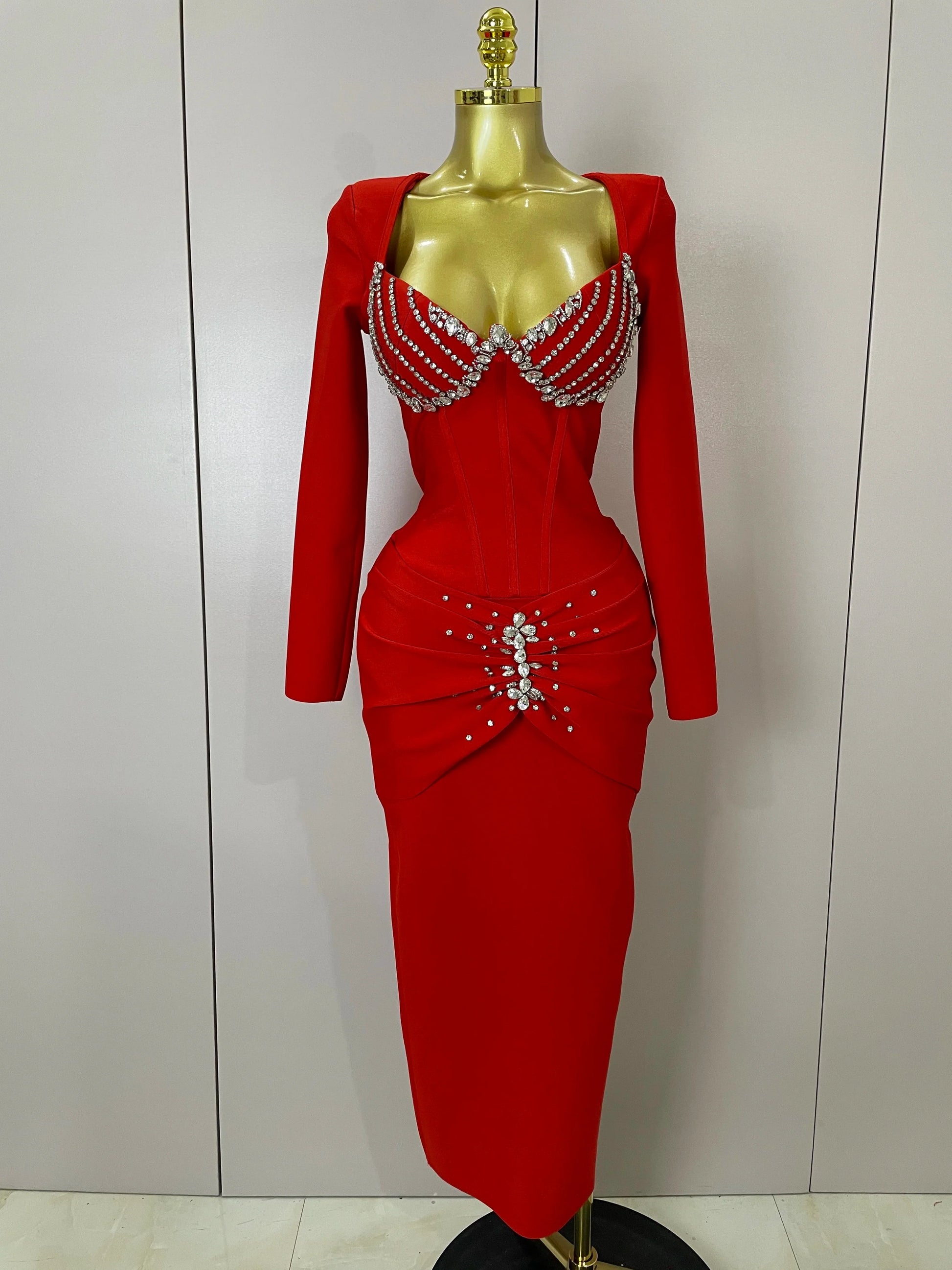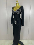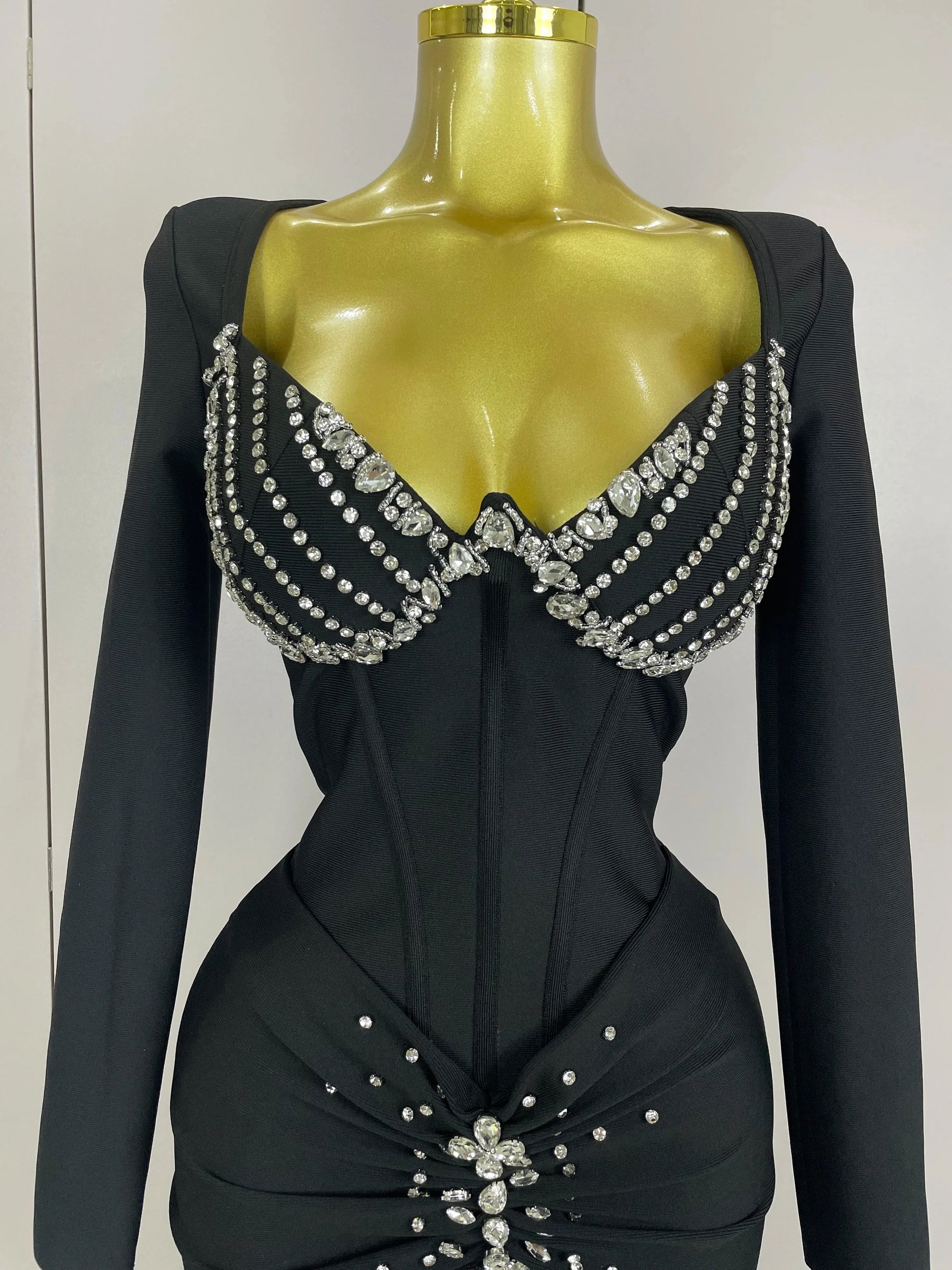 Sexy Luxury Sparkly Beading Bandage Long Sleeve Bodycon Dress New Women Celebrity Party Elegant Evening Club Pary Dresses