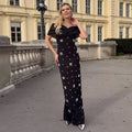 Shining Diamond Sexy Off The Shoulder Black Ankle Lenght Bandage Dress Graceful Woman Party Vestido Birthday Party Outfit