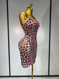 Sparkly Gold Rhinestone Transparent Sleeveless Mini Dress Evening Birthday Celebrate Party Nightclub Dance Performance Outfit