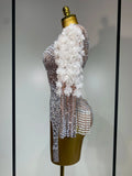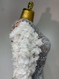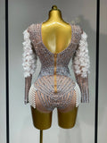 Sparkly Luxury Sheath Bodysuit Women Sexy Pearls Rhinestone Flowers Stage Singer Outfit Nightclub Performance Dance Costume