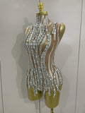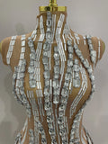 Sparkly Rhinestone Chain Sexy Transparent Sleeveless Bodysuit Women Party Nightclub Team Performance Costume Show Stage Wear