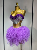 Sparkly Rhinestones Sexy See Through Blackless Two Pieces Set Women Luxury Birthday Outfit Evening Party Stage Perform Outfit