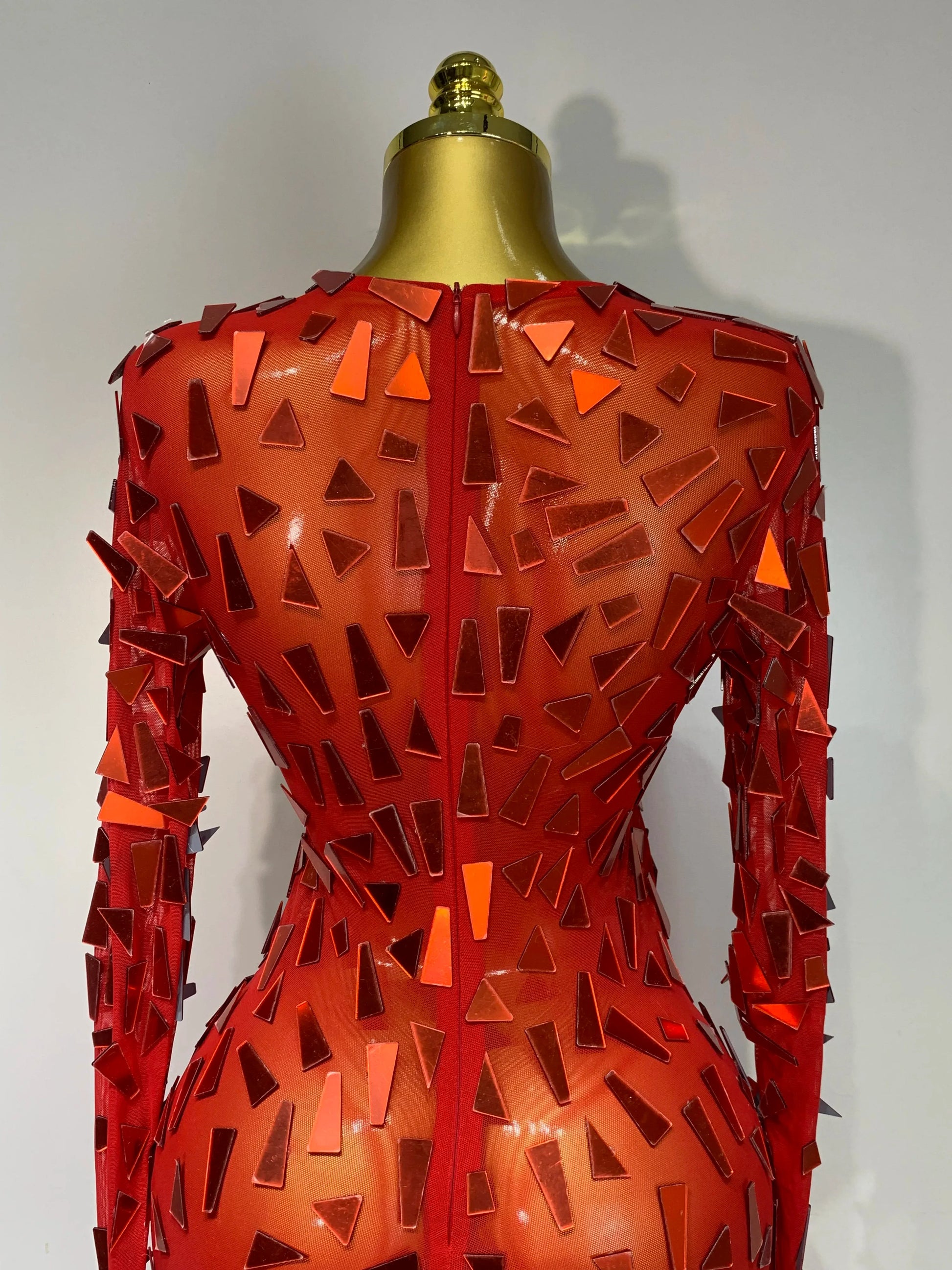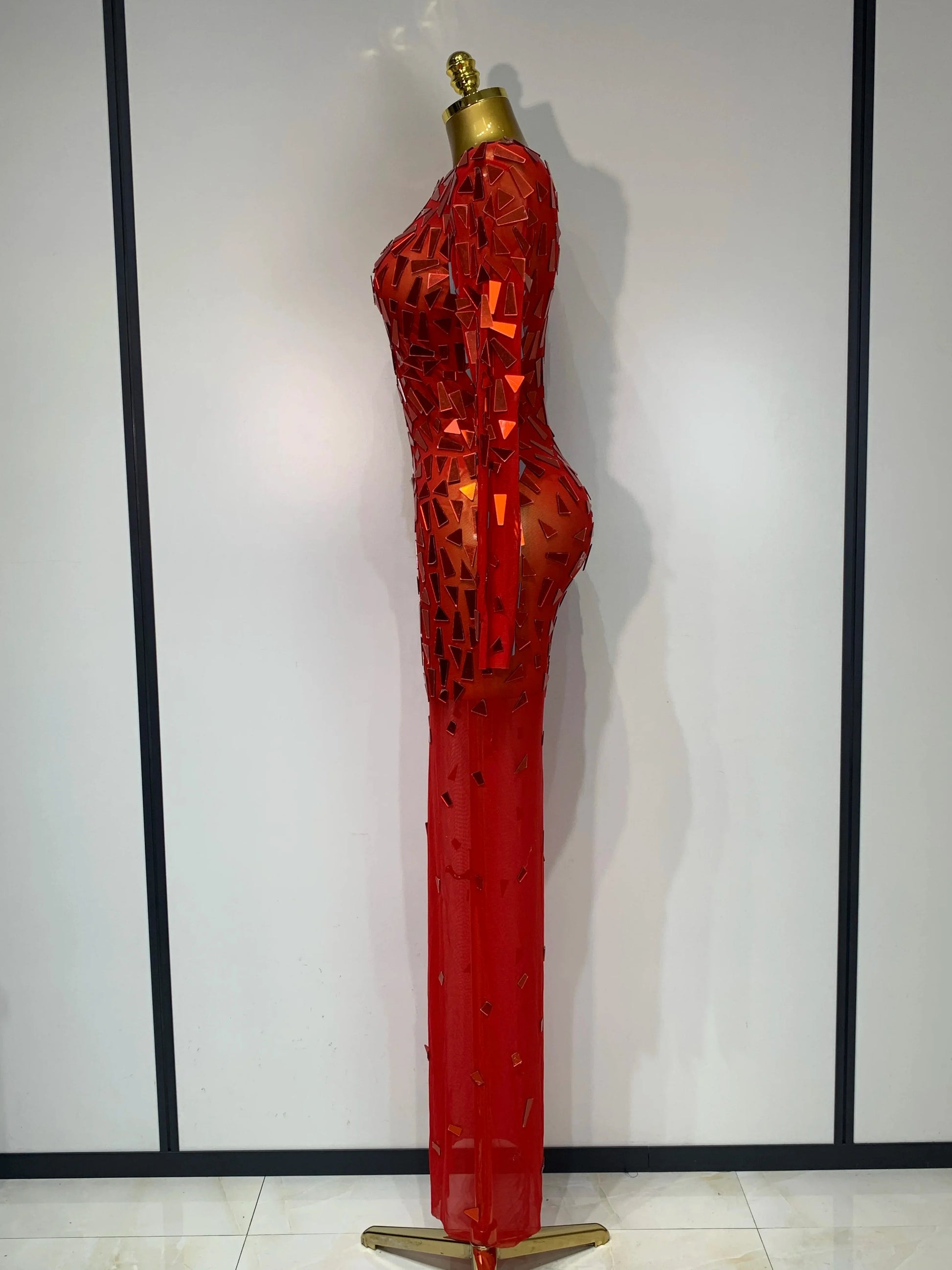 Sparkly Sequin Red Long Dress Luxury Birthday Celebrate Wedding Evening Prom Clothing Sexy Mesh See Through Strech Evening Gown