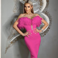 STOCK 3 Colors Gorgeous Feathers Shining Sequins V-Neck Strapless Mini Dress Woman Birthday Party Vestido NightClub Party Outfit