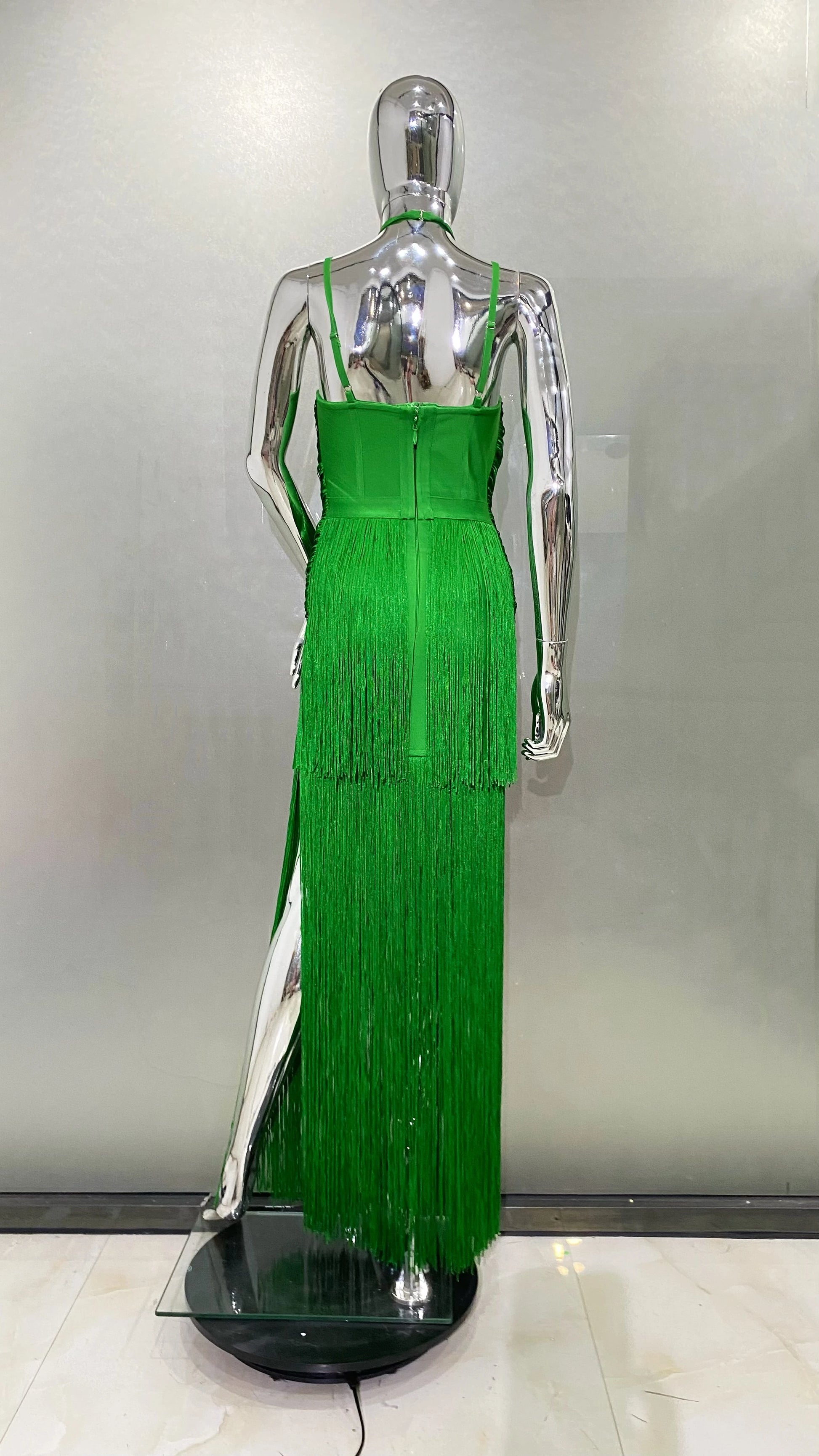STOCK Super Shining Diamond Tassel Sexy V-Neck Mini Dress Fashion Woman Birthday Party Outfit Performance Costume