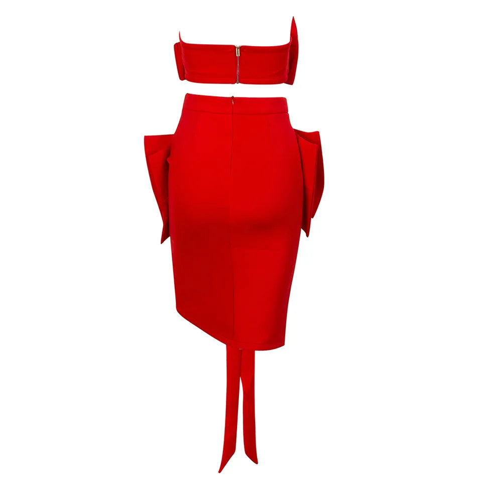 Sweet Bow Expose Wasit Woman Set Short Top And Bodycon Skirt 2 pieces Celebrate Birthday Party Vestido Summer Holiday Outfit
