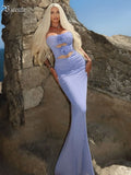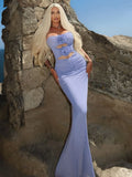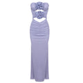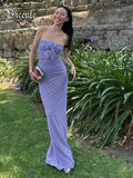 VC 2024 Summer New Light Purple Strapless Flower Bloom Midi Dress Sexy Spicy Girl Style Hollow Out Ruched Dress for Women