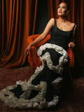 VC Artistic Black & White Strappy Dress Gown Ruffled Detailing for Creative Galas