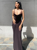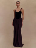 VC Chic Sleeveless Maxi Dress with Velvet Bodice and Chiffon Drape for Upscale Receptions Evening Gown