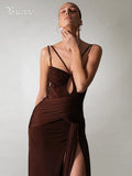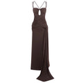 VC Chocolate Brown Strappy Sleeveless Draped Dress with High Slit & Cutout Detail for Formal Dinner Party Gown