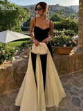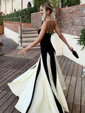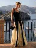 VC Color Block Spaghetti Straps Long Dress For Women Backless A-Line Maxi Celebrity Cocktail Party Evening Gowns Casual Vestidos