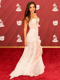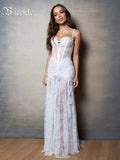 VC Dreamy White Strappy Corset Lace Transparent Wedding Long Dress Party Evening Gown