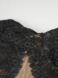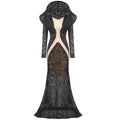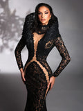 VC Lace Accent Maxi Dress High Neckline Cut-out Tulle Fabric Long Sleeves Floor Length Cocktail Party Evening Gowns