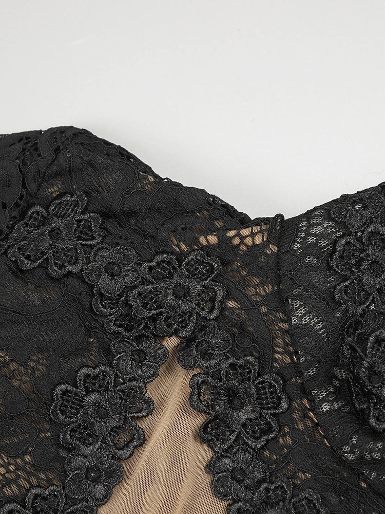 Regardless of the color you select for your dress, the white, black, or ivory lace accents will remain consistent. This applies to designs where the bodice and skirt are in different colors, maintaining a harmonious and sophisticated aesthetic.