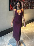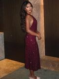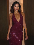 VC Stylish Halter Open-Back V-Neck Sequins Dress for Fashion Events Party Evening Gown